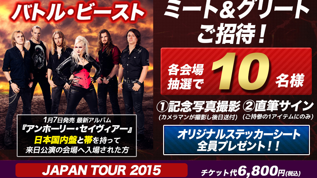 2008年にアントン・カバネン(G)が中心となってフィンランドで結成されたバトル・ビーストは、2012年にアルバム『スティール』でデビュー。ツアー終了後に初代の女性シンガーのニッテ・ヴァロが脱退したため、ノーラを迎えたバンドは2ndアルバム『バトル・ビースト』(2013年)をリリースするとこれが高く評価され、2013年11月には<LOUD & METAL MANIA>で初来日を実現させる。そして、今回、パワー・メタル系の楽曲からポップなナンバーまでバンドの成長を示すような楽曲を収録した新作『アンホーリー・セイヴィアー』を作りだした。