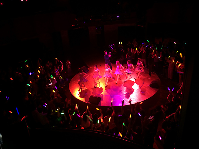 Chu-Zが円形ステージでパフォーマンスを行うのは今回が初めてのこと。イエロー担当のあすかが「おしりばっかり見ることになる人もいるかもしれないけど、どうぞ楽しんでいってください!」と冗談まじりに呼びかけつつ、メンバーは360度全方位に向け息のあったダンスを披露した。