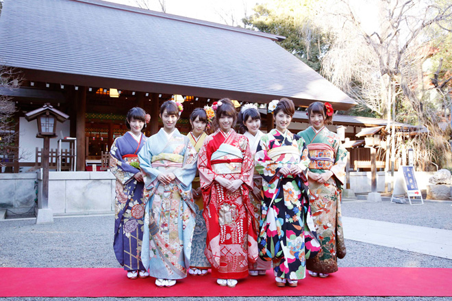 2015年新成人を迎える乃木坂46のメンバー井上小百合、桜井玲香、中田花奈、永島聖羅、西野七瀬、能條愛未、若月佑美の7人が、1月10日(土)東京都港区にある乃木神社にて成人式を行った。