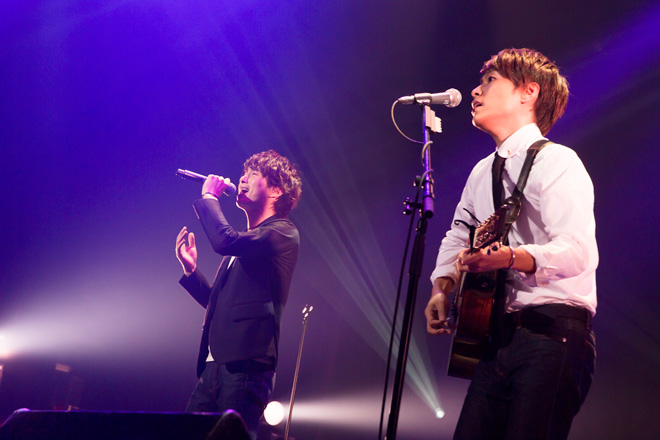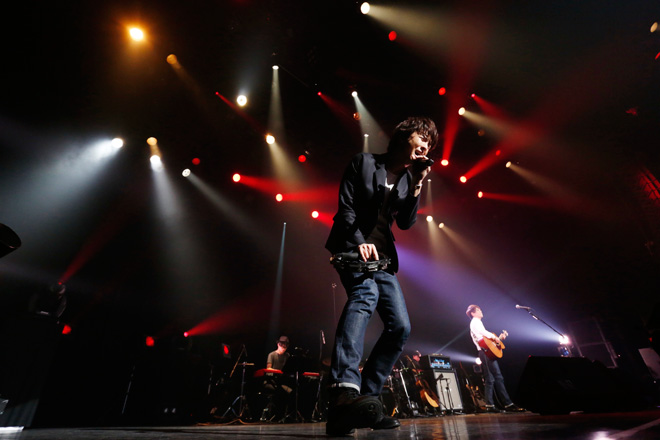ライブは2ndシングル「Hello」からスタート。会場いっぱいのファンを見渡して、上田和寛(Vo)は、「赤坂BLITZ、満員です!ありがとうございます!」と感無量の様子で話し、「デビュー1周年を迎えます!これまで活動してきた中で出会ったくれた方々が皆ここに来てくださっていると思うと感謝の気持ちでいっぱい。今日は感謝の気持ちを目一杯こめて僕達の音楽を届けていきたいと思います!」と挨拶。観客は大きな拍手で応えた。