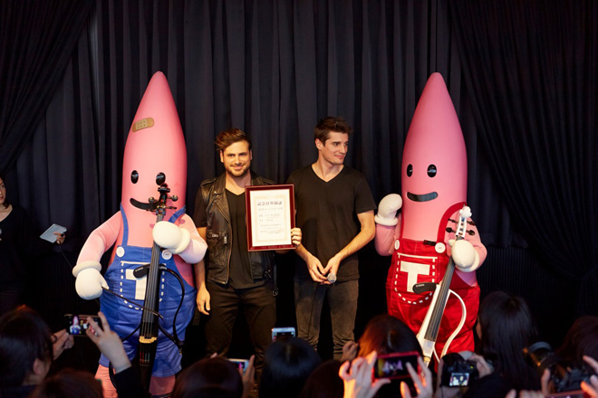 1月20日(火)、高さ150mの東京タワー大展望台1Fで2CELLOSのフリーライブが行われた。結成4周年を記念するこの日は、日本記念日協会より正式に「2CELLOSの日」に認定され、東京タワーのマスコットキャラクターのノッポン兄弟も、日本を代表する2人組として祝福に駆けつけた。