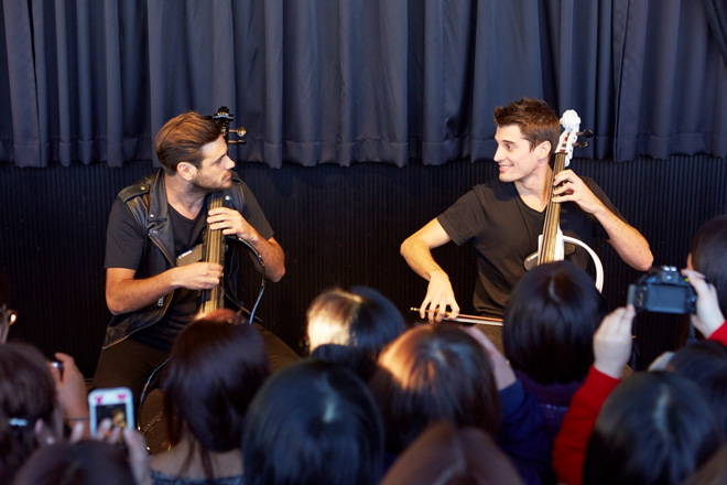 ステファンは「ちょうど4年前の今日、「スムーズ・クリミナル」(マイケル・ジャクソンのカバー)をYouTubeにアップロードしたときから、こういう日が来るだろうとずっと思っていた」と語り、ルカは「2CELLOSと日本は一目ぼれで愛しあっている。僕たちのことを4年前からずっと応援してくれて本当にありがとう」と感謝の気持ちを伝えた。