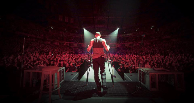 チェスターは足首を骨折。Facebookには、週末(1月18日)開かれたインディアナポリス公演で杖をついてステージに立つ彼の写真が公開され、「チェスターの足の骨折がショウを止めることはない」とのコメントが付けられていた。