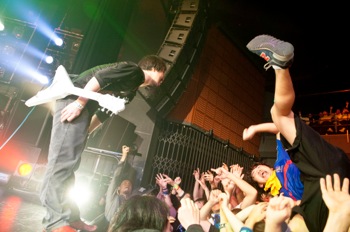 今回ツアー・ファイナルは仙台でやりたかったと思いを述べるHATANO。今日の気持ちも東北へ持って行くと告げた後、「Eternal Wish,Twinkle Star」に突入。すると、ステージには途絶えることなく観客が上がってダイブしまくる。ここは新宿ACB(キャパ約250人)かと思うほど、フロアとの距離を感じさせない沸騰ぶり。「Light Remains The Same」で本編を締め括り、アンコールに応えるとYUTAがこう語った。