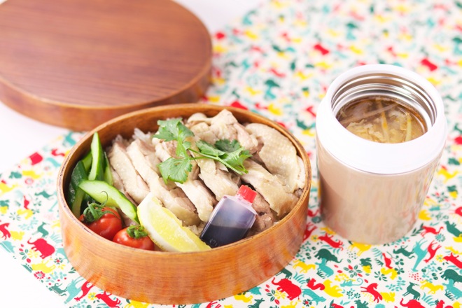 メニュー例: ほうれん草とマッシュルームの食べるスープ/シンガポールチキンライス弁当/ヤンソン氏の誘惑/さんまの梅酢煮と揚げ玉ご飯/グラノーラ/どら焼き/他