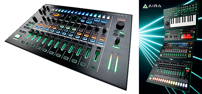 「AIRAシリーズ」(2014年3月発売)は、ダンス・ミュージック分野に向けた最先端のデジタル・ツール。現在までSYSTEM-1、TR-8、TB-3、VT-1が発売されている。演奏時のアイデアを瞬時にカタチにし、リアルタイムに最高のパフォーマンスを発揮できるよう開発。往年の名器を精密にモデリングするだけでなく、リアルタイム・パフォーマンスと音楽制作の垣根を越えるべく、さまざまな新機軸を搭載したことにより、発売以来、多くのミュージシャンに愛用されている。そのAIRAシリーズの各製品をUSBケーブルで接続するだけで、ミキシングが可能になるのが「MX-1」というわけだ。
