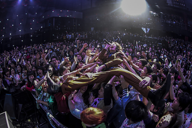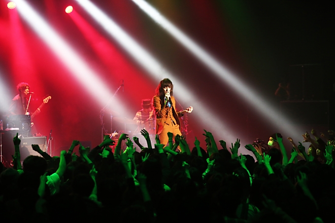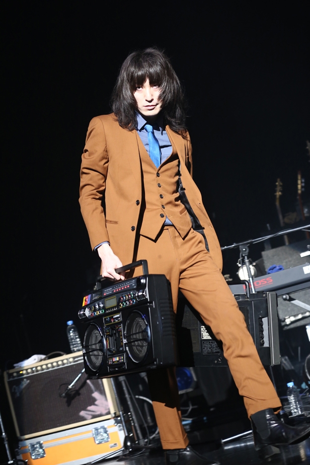 注目が集まるライブは4名のサポートメンバーを従え行われた。サポートメンバーにはバンド・おとぎ話からギター・牛尾健太、ドラムス・前越啓輔、ベースにはニューアルバム『1』にも参加したバンド・toldの有島コレスケ、そしてキーボードには『1』で楽曲の共同アレンジを行った長谷川智樹が参加。ライブが進むにつれ志磨の茶色のスーツの背中に滲む汗が翼の形に広がってゆき、ライブの熱さとともにその凄まじいエネルギーを物語る。