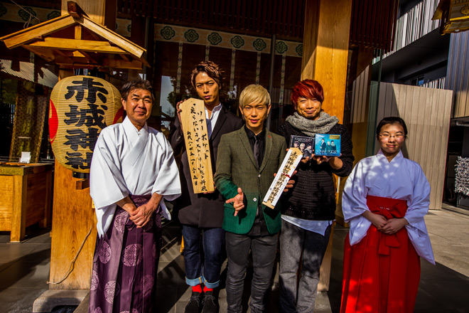 1月28日にニューシングル「戻らないラブストーリー。」をリリースするソナーポケットが、ファン50名とともに、東京 神楽坂にある赤城神社にて、作品のヒット祈願と失恋ご祈祷イベントを実施した。
