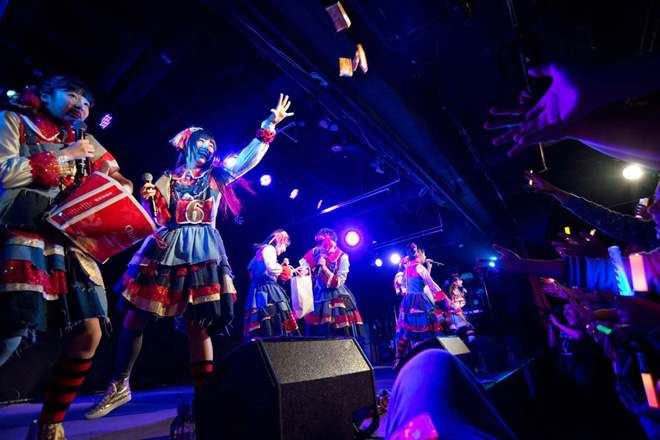 おなじみの「ebiture」でメンバーが次々に登場し、割れんばかりの歓声の中「売れたいエモーション!」で一気に会場は一気にヒートアップだ。「ザ・ティッシュ~おわらない青春~」「バタフライエフェクト」「放課後ゲタ箱ロッケンロールMX」と、ブチ上げナンバー5曲をノンストップで次々と披露した。