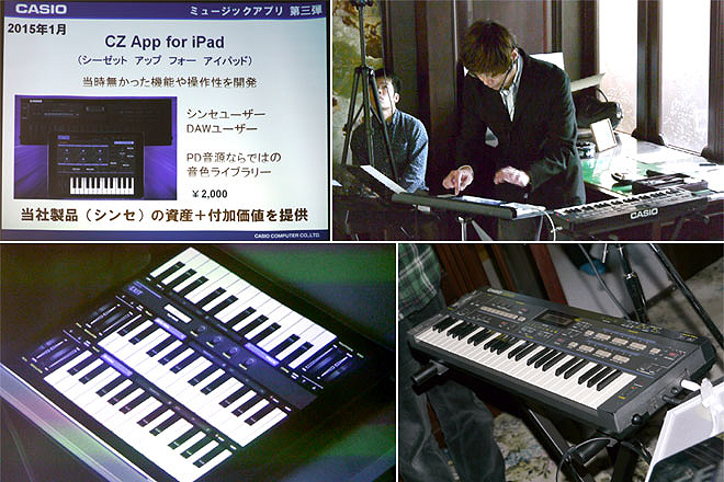 あわせて1月22日に発売された「CZ App for iPad」についても、オリジナルの「CZ-101」との組み合わせによるデモ演奏を交えて紹介。オリジナルCZシリーズのサウンドが再現され、音作りが楽しめることに加え、iPad内の曲に合わせて演奏ができること、鍵盤を最大4つ表示させ向かい合わせのレイアウトで2人同時演奏可能なことなどもアピールされた。