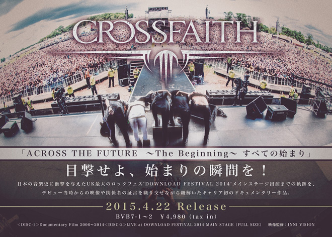 また、DVDは2枚組で届けられ、DISC1にはドキュメンタリー作品を。DISC2には<DOWNLOAD FESTIVAL 2014>のメインステージのライブ映像が完全収録される。このDVDでCrossfaithが国内デビューからたった2年で欧米有数のロックバンドと肩を並べるに至った経緯を、改めて知ることができるだろう。