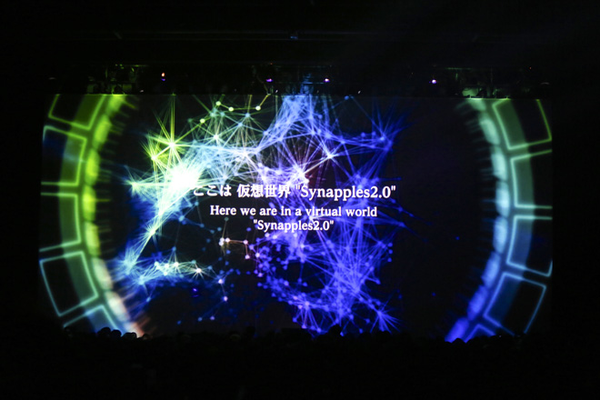ただアーティストが出てきてライブをするという従来のイベントライブではなく、このイベント名にもなっている“Synapples2.0“というヴァーチャル・アーティストがナビゲート役となり、最新映像技術を用いてライブパフォーマンスをし、そしてリアルなアーティストのステージへとつないでいくという演出がなされた、強いストーリー性のあるライブ・エンタテインメントだった。