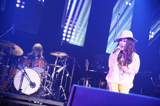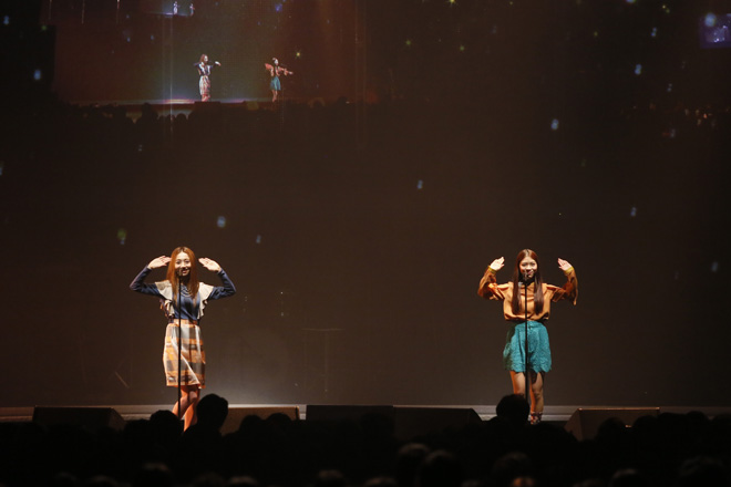 その甘い歌声の心地よい余韻が残る中、激しいネオンが光り出し、Synapples2.0が再び登場。今度はJUJU「Hot Stuff」の英語詞カバーをまるで生身のアーティストのようなパフォーマンスで披露し終えると、その後登場したのはJUJU本人。本家「Hot Stuff」を披露した。自身の2nd Cover Albumからは「情熱」を、さらに話題の映画『娚の一生』の主題歌「Hold me, Hold you」をライブ初披露し、会場は温かい多幸感に包まれた。全曲アゲハスプリングス・玉井健二プロデュースによる楽曲だ。
