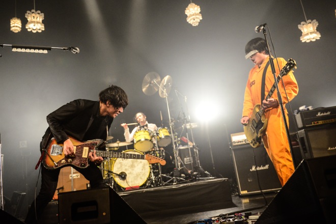 indigo la End/ゲスの極み乙女。の川谷絵音と、この曲の短さから2回も演奏したブラーの「Song2」では、切実さの強い川谷の歌声と「Song2」にある爆発力が見事なマッチングを聴かせた。それに、アルカラの稲村太佑と川上洋平のデュエットがまるでスナックのカラオケタイム状態だった「壊れかけのRadio」でのふたりは、国民的歌謡曲であろうが反射的に「自分のものにしてしまう」というロックボーカリストの鏡のようだった。(と言うとちょっと素敵な表現過ぎるが、想像通りの悪ふざけのテンション込みで楽しかったし、実際、貴重なものが観れた。)