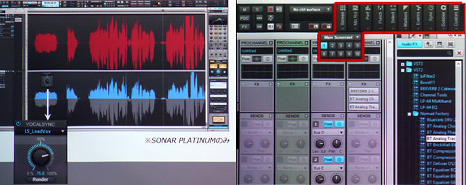 オーディオ編集機能ではボーカル編集を効率的にするVocalSync機能が追加(PLATINUMのみ)。コーラスパートを含む複数のボーカルパートについて、カンタンな操作でタイミングをぴったり合わせ、サウンドに一体感を与えられる。デモではラップを録音した2トラックを例に、ノブを回すだけでシンクすることが示された。