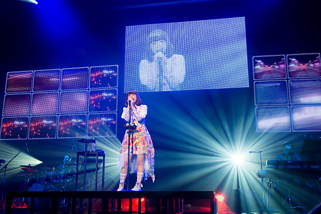 2ndアルバム『ポリオミノ』を引っ提げ、宮城、愛知、大阪、福岡、北海道と、それぞれの会場で“ポリオミノ”=正方形のブロックを並べるパズルゲームのようにセットリストを組み変え、オリジナルの世界観を作り上げていった今回のツアー。渋谷公会堂では「東京だけの“ポリオミノ”を作ります」というやなぎのMCの通り、巨大な三面スクリーンに映し出される映像と連動した、ポップネスと解放感に溢れたライブを構築した。「トコハナ」「Sweet Track」「クロスロード」「アクアテラリウム」といった人気タイアップ曲をはじめ、披露された楽曲は全18曲にのぼった。