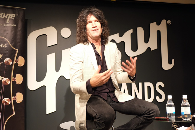 3月1日の夕刻、東京・八重洲のギブソン・ショウルームにて、KISSのギタリスト、トミー・セイヤーがインタビューに応じてくれた。ごく限られた時間ではあったが、彼はそのなかで、この春に発売を迎える新しいシグネチャー・モデルのこと、日本の音楽事情への関心や、ジャパン・ツアー後のことなどについて、たっぷりと語ってくれた。この貴重なインタビューの全編は後日、ノーカットでお届けすることをお約束しておくが、まずは今現在ならではの話のみをピックアップして速報にてお伝えしておこう。
