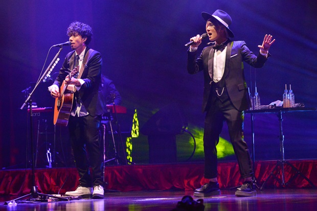 これまでのライブとは趣向を変えて、吉田山田では初となるストリングスカルテット(ヴァイオリン×2、ビオラ、チェロ)を迎えてのスペシャル・ライブとなったこの日、吉田山田の2人はタキシードに身を包んでの装いで登場し、詰めかけたファンの歓声を浴びた。