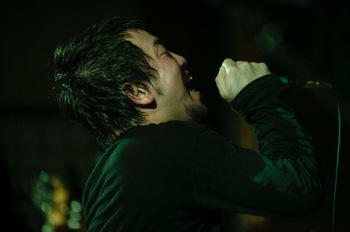 程なくして楽器隊4人のメンバーが登場。「最高の1日にしよう!」とホワイティ(B)の絶叫に近い掛け声と共に、インストナンバー「Intro」からいよいよライブがスタートした。曲の終わりで中途(Vo)が登場すると全照明がONになり、ステージと客席を真っ白に照らし出していく。「やりますかぁ! 京都! F.I.B始めます」と告げると「Cast Off Tinsel Lie」の高速メロディック・パンクナンバーの疾走感が超満員の会場をのみ込んで行く。「For All Time」、「Fill in the blanks」と畳み掛けると、寂しい/嬉しい/楽しい/悲しい/やめるなといった感情がぐっしゃぐしゃになって渦巻く場内にマイクの声を上回るぐらいのオーディエンスの歌声が響く。それもそうだ。このライブを最後にF.I.Bは活動を休止するのだから、フロアも1音足りともを聴き逃さないように必死だ。