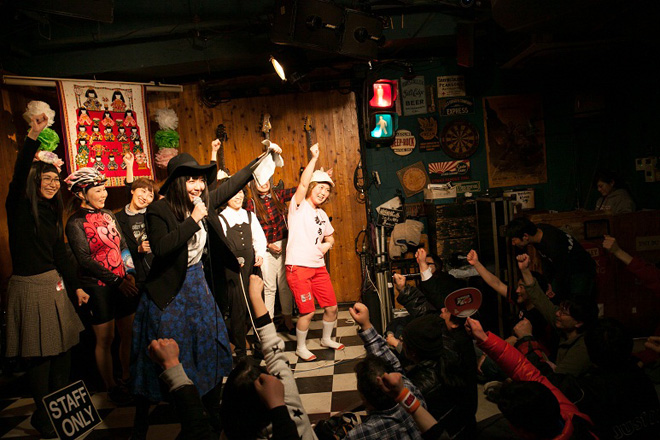 続いて登場したのは「ぴちぴちピーチズ」こと桃組。メンバーのワタナベマユ、ハットリクミコ(シナリオアート)、Reiに加え、蒼山幸子(ねごと)、片平里菜が代わる代わるボーカルを務めた。