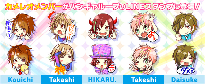 また、スマホ向けオリジナル新作マンガ配信サービス「GANMA!」にて連載中のコミック「バンギャループ」のLINEスタンプが「カメレオコラボ版」として登場人物のスタンプに加え、カメレオメンバーのスタンプも10種含んだ形で発売された。
