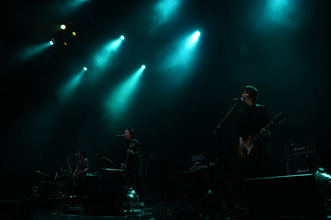SEにあわせ、暗闇の中でメンバーが登場するなか、川島はギターを持たずに現れ、新曲「SHINE」をボーカルだけで歌い上げる形でライブはスタートを切り、オールスタンディングの客席は一気に興奮の坩堝と化した。今回からサポートギターとして元The Cigavettesで、現在はくるりや後藤正文などのサポートギタリストを務める山本幹宗が加わって4人編成となり、ブンブンサテライツの新たな音世界も垣間見られるライブとなった。
