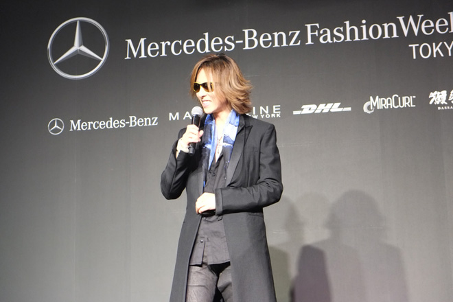 3月16日(月)、六本木のメルセデス・ベンツコネクションにYOSHIKIが登場、「Mercedes-Benz Fashion Week TOKYO」2015-16 秋冬オープニングレセプションに華を添えた。