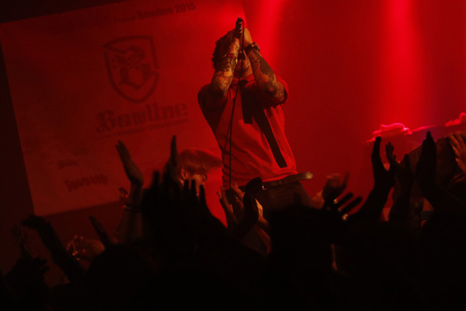 そしていよいよ今回のBowlineのキュレーターでもあるBRAHMANが登場。SiMのステージでライブハウス内はすでにその日の寒さを忘れるほどの暑さだったが、BRAHMANのメンバーがステージに現れると、フロアは叫びにも似た歓声とともに一気に熱気が増す。