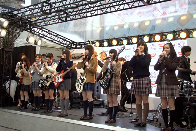 ギター5名+ドラム3名の女子中学生8名によるパフォーマンスユニット「五五七二三二〇(読み:ゴー・ゴー・ナナ・ニー・サン・ニー・レー)」が3月19日に新宿ステーションスクエアでゲリラライブを敢行。謎に包まれていたその正体が明らかになった。