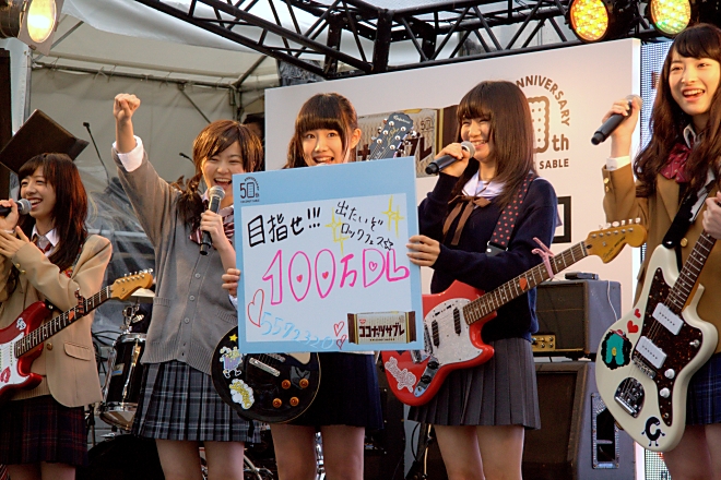イベントでのトークセッションの最後には、司会から「2曲目の予定は?」と話題を振られ、安本彩花が「みなさんが“やってもいいよ!”って言ってくれたら。」と笑顔でコメント。非公式ながらハッシュタグ「#五五七二三二〇」で署名ツイートを集めようという流れに観客からも歓声が沸いた。五五七二三二〇の一曲目「半世紀優等生」での目標は、100万DL。ボードを手にメンバーらが気合の掛け声をいれ、イベントは終了した。