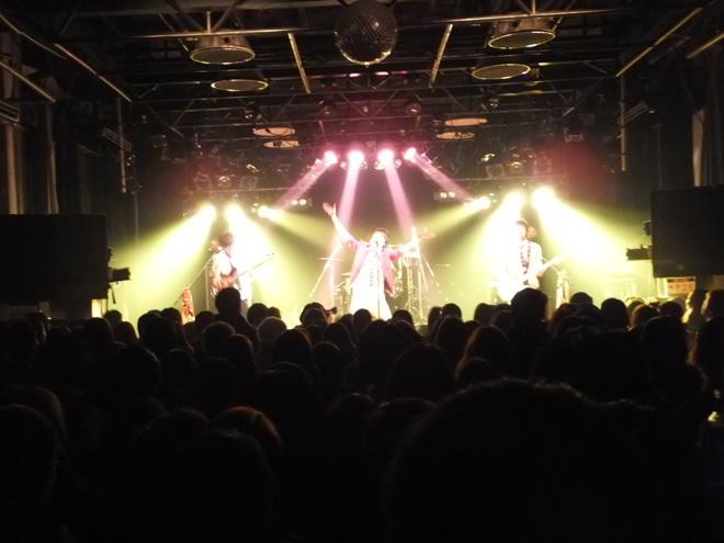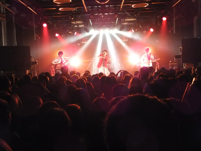 この日、チケットも完売しきっちり350名を動員、「初めてMUSEでライブを行ったときはお客さんが5名しかいなかったよ~」とMCで触れながらも、ボーカルの楓は満員のオーディエンスをみて満面の笑みを浮かべた。