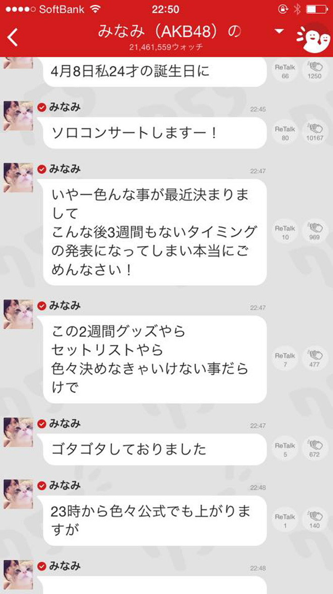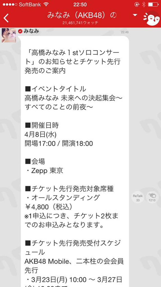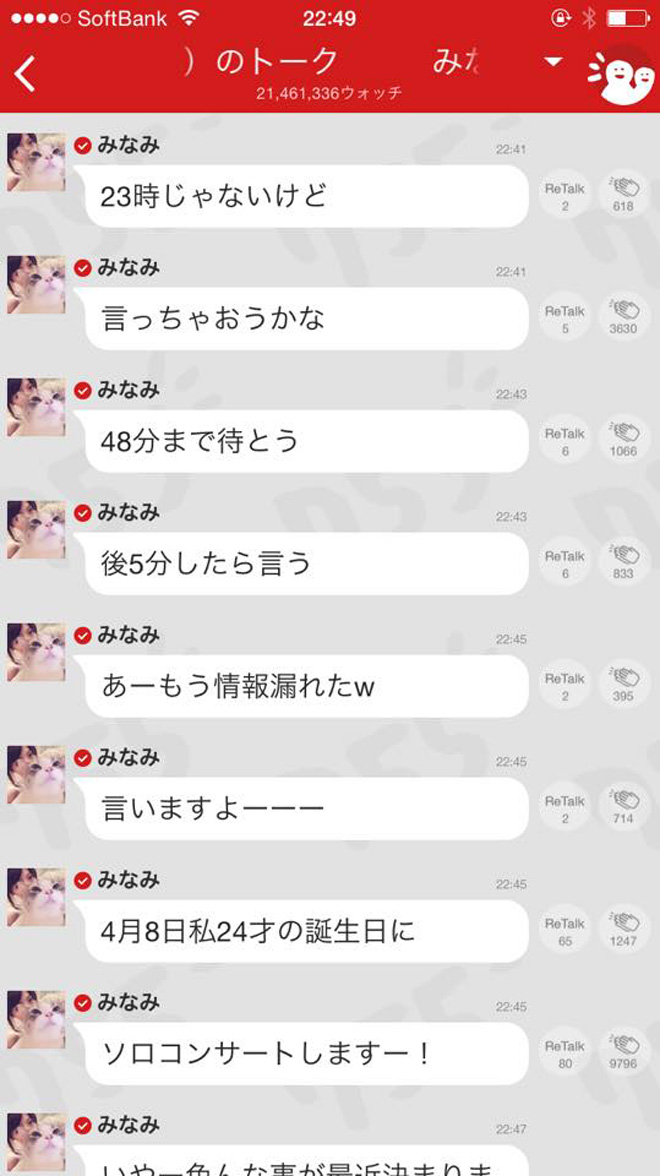 3月22日(日)23時が情報解禁に設定されていたようだが、「23時じゃないけど」「言っちゃおうかな」「48分まで待とう」「後5分したら言う」など、どうにも言いたくて我慢できない書き込みが連投され、ファンの期待が焚き付けられた形だ。