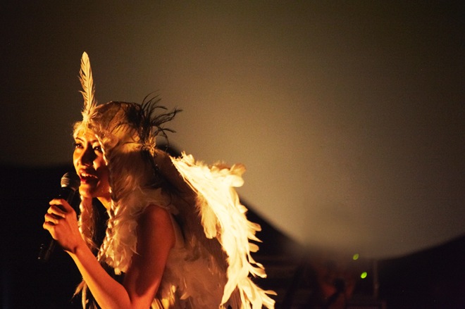 ライブのオープニングでは、「幾歳月」のミュージックビデオさながらスモッグの中からハンモックに吊るされて登場し、中村は観客をグっと惹きつけた。そして、最新アルバム『世界のみかた』の収録曲を中心に、デビュー曲「汚れた下着」、そして代表曲「友達の詩」など、計19曲を熱唱。妖艶でありダイナミックなバンドパフォーマンス、且つギターのみのシンプルで繊細なサウンドを繰り広げるなど、多種多様な構成により様々な感情がステージ上に溢れた。