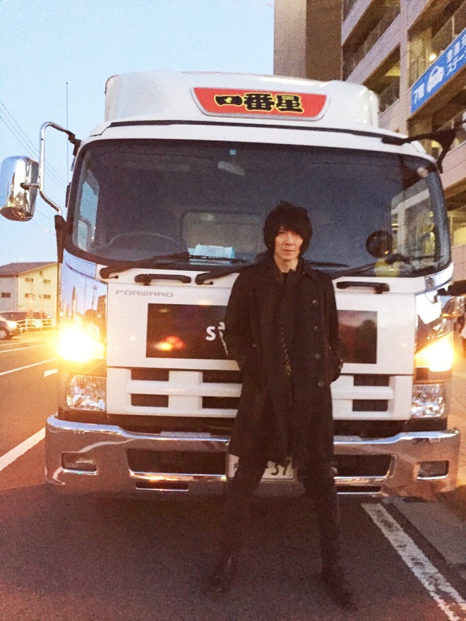 吉井和哉は、福岡~札幌という日本縦断全4,000キロをたった一人の運転で完遂させたドライバーの労をねぎらい、トラックをバックにドライバーと記念写真も撮影。全ての役目を終えたトラックとドライバーは、安心して東京への帰途へついたということだ。