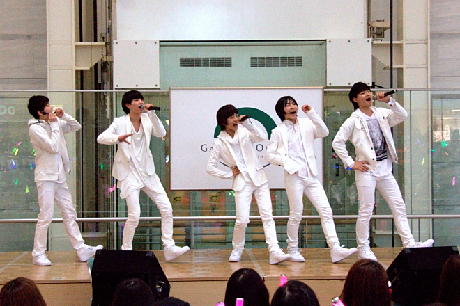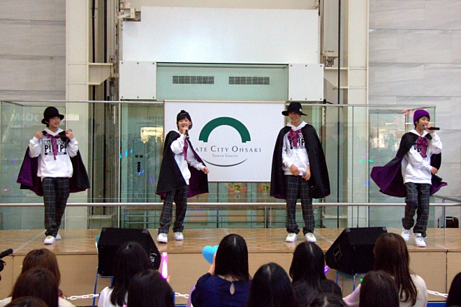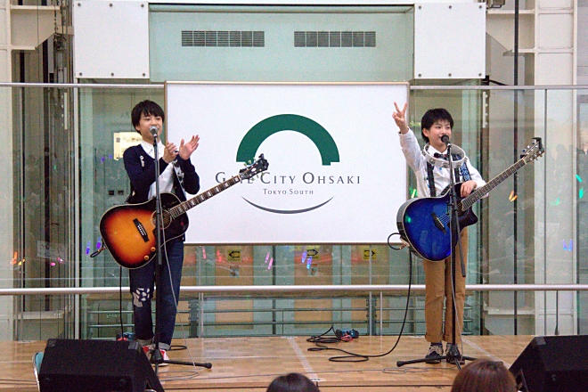 先月開催された3組合同のイベントからの第2弾となった本イベント。会場となったアトリウムは優先観覧エリアを含めた多数のファンで賑わっていた。オープニングアクトをつとめたEDiDAN KiDSのダンスパフォーマンスの後、ステージに立ったのはギターフォークデュオ「さくらしめじ」の2人。今日の3組の中では3月11日にシングル「いくじなし/きのうのゆめ」で最初にCDデビューを果たした。