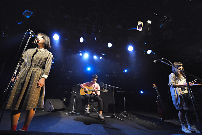 中盤には最新シングル「Fly」を共作したレーベル・メイトでもあるベリーグッドマンのRoverがギターで参加した。HARUKAはグロッケンを演奏し3人で宇多田ヒカルのカバー曲を披露し、MUTSUKIの歌の上手さを際立たせる。「Fly」での囁くようなボイスは、春を待つ暖かな木漏れ日の中で聴くような気持ちよさだ。