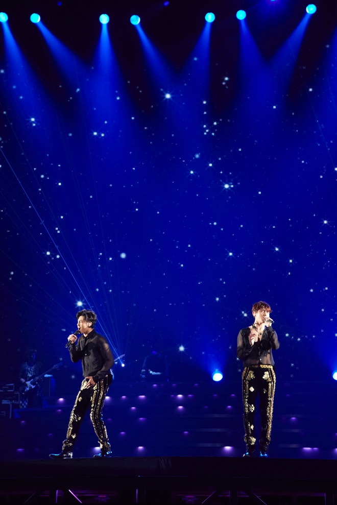 そんなお祭り騒ぎの雰囲気をガラリと変える「Love in the Ice」。目を閉じて想いをぶつけるように熱唱するチャンミンのほうに体を向けて、その様子を目に焼き付けるように歌い上げるユンホ。集まった5万5000人のファンは、そんなふたりの姿をじっと見つめ、やがて、まるでドームの屋根が激しい雨に叩かれたかのような大きな拍手に包まれた。