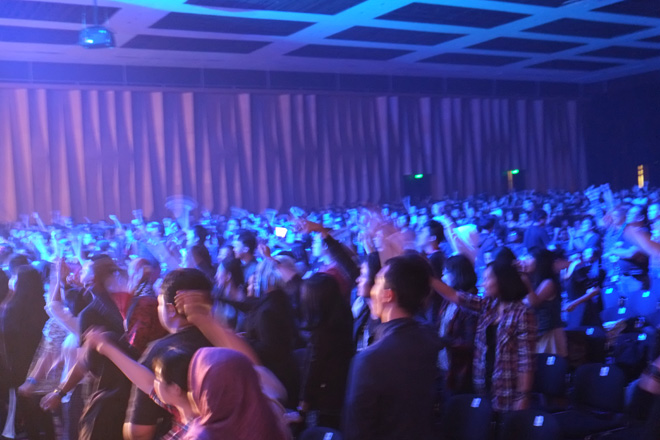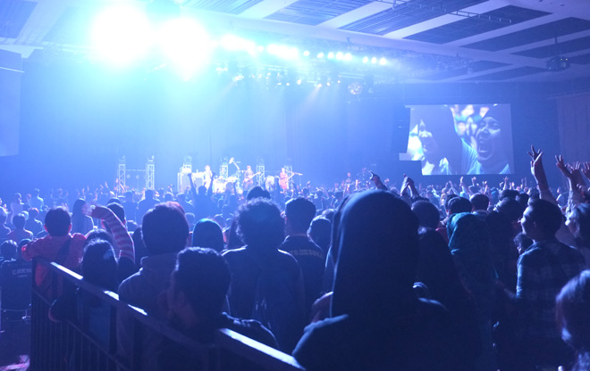 空気を切り裂くようなシャウトを硬質なバンド・サウンドに乗せて、人の波が揺れる揺れる。本当にジャカルタの人たちは音楽で楽しむのが上手だ。
