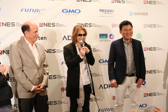 4月8日、新経済連盟主催による<新経済サミット2015>にYOSHIKIが登壇、元駐在米大使ジョン・ルース氏とともに未来を語った。