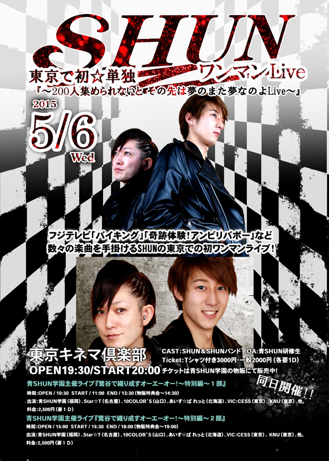 (以下、5/6の青SHUN学園主催イベント&SHUNの単独ワンマンLive詳細)