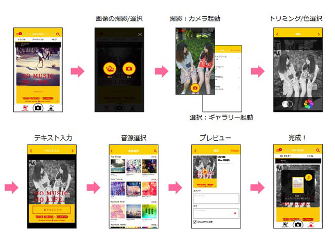 タワーレコード株式会社が株式会社レコチョクと連携し、スマートフォン向けサウンドカメラアプリ『NO MUSIC, NO LIFE. SOUND CAMERA』を4月20日にリリースした。