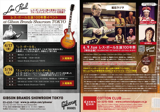 レス・ポール氏の生誕100周年を記念して、6月9日の誕生日に、徳武弘文のスペシャルライブ「レス・ポール生誕100年祭 CELEBRATING 100 YEARS OF LES PAUL IN 2015」が開催される。スペシャルライブをさらに盛り上げるため、4月17日に東京八重洲のGibson Brands Showroom TOKYOでレス・ポールの人物にフォーカスした入場無料のプレイベントが開催された。
