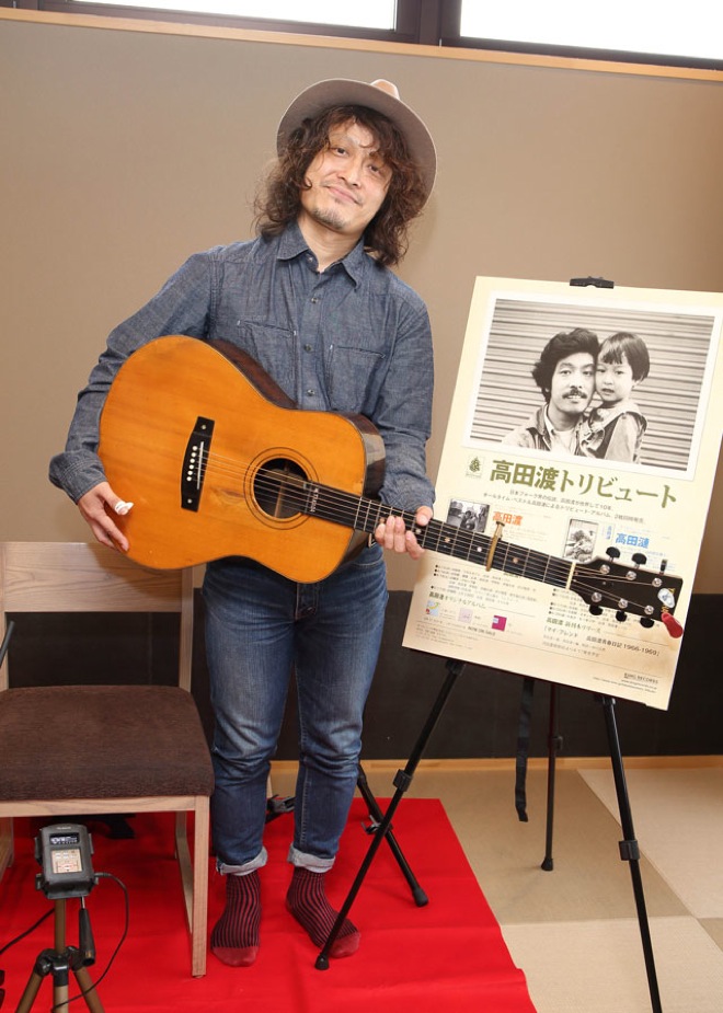 2015年4月で没後10周年を迎える伝説のフォークシンガー・高田渡(享年56)の長男であり、マルチ弦楽器奏者とも呼ばれている音楽家、高田漣(41)。今作『コーヒーブルース~高田渡を歌う~』は、父・高田渡が遺した楽曲を漣が歌ったカバーアルバムであり、「自転車に乗って」から「くつが一足あったなら」まで全14曲が収録されている。その特別な作品のリリースイベントが行われた「いせや」は、漣が子どものころから父によく連れられ、自らも常連客だという吉祥寺きっての名店だ。