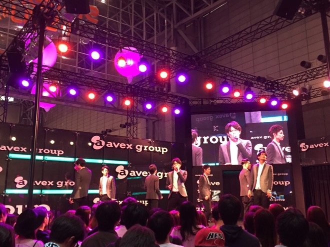 普段、番組を通して披露していた歌声が、今回はエイベックスブースにて生ライブ。SOLIDEMOの登場に、押さない、駆けない、ドラゲナイで会場に詰めかけたニコ厨たちからは「かっこいいー!!」「大きいー!!」と歓声が巻き起こる。そんな中で、ドラマ「戦う!書店がール」の挿入歌として話題の最新曲「Girlfriend」を含む数曲を熱唱。メンバーの手島は「熱気のある場所でパフォーマンスすることができて嬉しかった。楽しそうなブースもたくさんあって色々まわりたいと思った。」と語った。