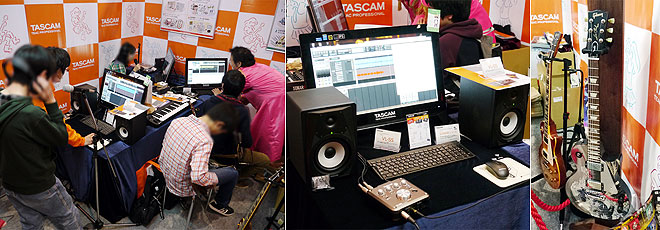 HALL 1、2、3の企業ブースにはTASCAMが「誰でも超作曲大作戦 by TASCAM」、ローランドが「“超”Rolandシンセサイザーブース」と題して出展。新製品・人気製品を多数並べる楽器関連のイベントと異なり、これから楽器や音楽制作を始めたいという人に的を絞った展示内容が印象的。いずれも多くの来場者を集めていた。また、VOCALOID関連では「超ボーカロイドエリア」が今年も登場、ライブ・ステージは大きな盛り上がりを見せた。