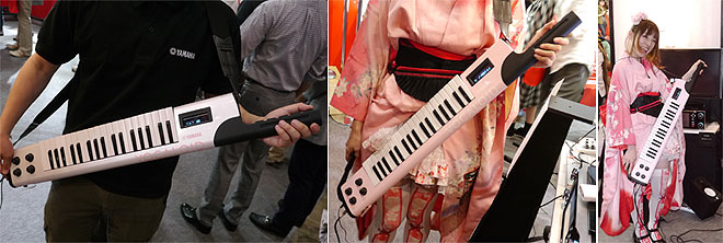 ▲「VOCALOID Keyboard」はJOYSOUNDのブースにも展示。声を出す楽器ということで、カラオケとも相性がいいのではないかということで出展が決まったとか。カラーはホワイト、ブラック、ピンクの3色を用意。ピンクは内蔵ライブラリVY1のイメージカラーに合わせて選択された。デザインはニコニコ学会のブースにあったものよりも洗練され、完成度が高い仕上がりだが、残念ながら発売の予定などはないとのこと。ぜひ、カラオケで一緒に演奏してみたいものだ。