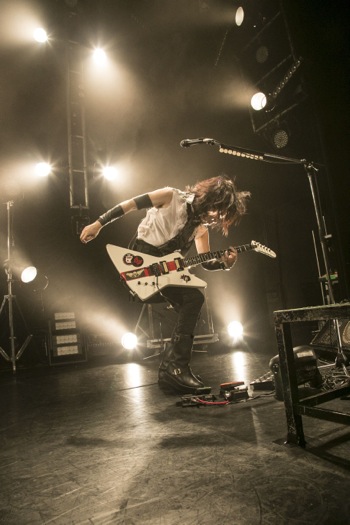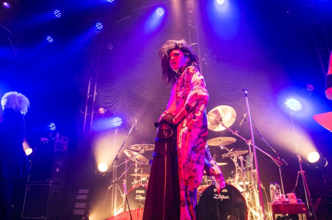 ライブのハイライトは、キネマ倶楽部2階の踊り場からHAKUEIが和傘をさし、着物をアレンジした衣装を素肌にまとって登場した中盤の「天城越え」(石川さゆり)。演歌にヘヴィメタルをぶつけあわせた千聖のダイナミックでテクニカルなギター、楽曲の起伏をドラマティックなアプローチで体現するO-JIROのドラム、情念と儚さを表現したHAKUEIのヴォーカルがひときわ鮮烈な印象を残した。