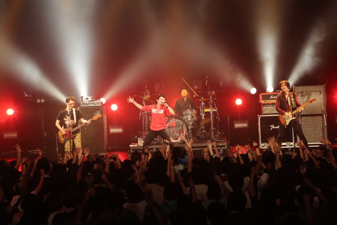 中盤では最新ミニアルバム『HEN 愛LET’S GO!』収録曲「Dr Pepper!!!!!」が披露され、キラーチューン「Rocket」では大盛り上がり。さらには『音楽と人』がきっかけとなって参加したBUCK-TICKトリビュートアルバム収録曲「Sid Vicious ON THE BEACH」が披露されるなど、一瞬たりとも飽きさせないステージを展開した。