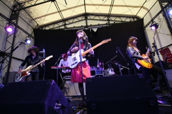 「TENT STAGE」では札幌在住のロックバンド、Drop’sが素朴かつパワフルなステージを繰り広げた。4月22日にリリースされたばかりの3rd EP「未来」からのナンバーも混じえ、アッパーな曲になるとギターを下ろしてパフォーマンスしながらシャウトする中野ミホの人格チェンジも刺激的。「『音楽と人』は毎月買っていた憧れの雑誌だったので、今日はとても嬉しいです。今日はお祭りということで、飲んで美味しいもの食べてはじけていってくださいね」と集まった人たちをほっこりさせつつ盛り上げた。