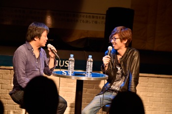 また、同じ時刻に「LOUNGE STAGE」では加藤ひさし×増子直純の生大放談が行なわれ、こちらも大盛況。ちなみに加藤は展示衣装を増子に「私服でしょ?」と突っ込まれていた。なお、このトークには金光編集長も参加。息の合ったトークで爆笑につぐ爆笑の一幕となった。